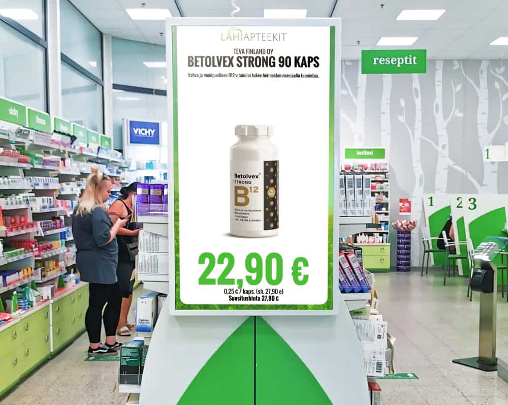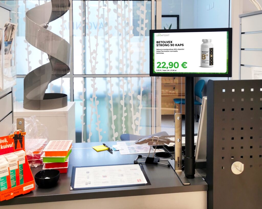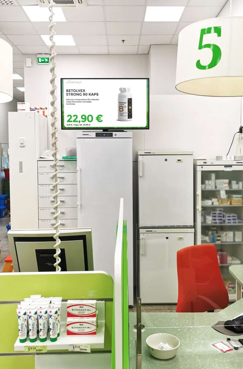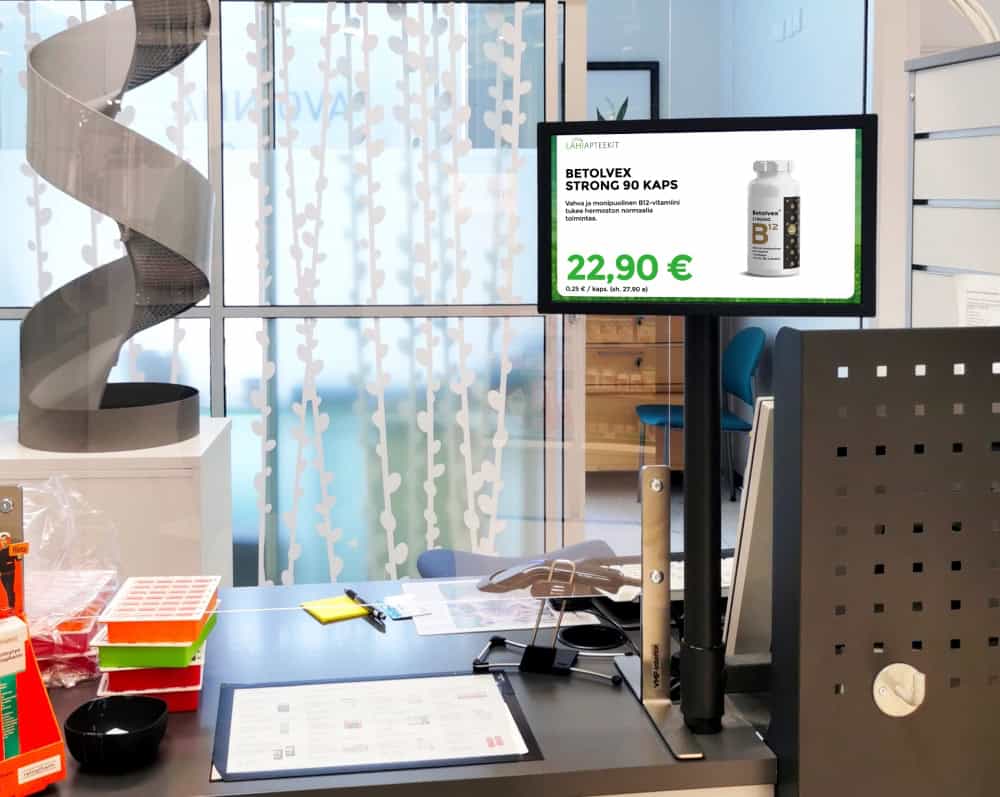 Apteekkiala digitalisoituu nopeasti ja digitaaliset näyttöpinnat ovat tulleet luonnolliseksi osaksi asiakasviestintää. Lähiapteekit halusi nykyaikaistaa markkinointikanaviaan ja hyödyntää mainosnäyttöjä tehokkaammin myynnin tukena.